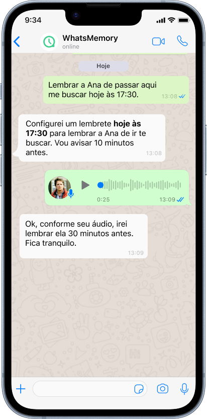 O Whatsmemory interpreta é capaz de entender o seu áudio e executar a tarefa de criar um lembrete, um evento ou qualquer coisa que precise